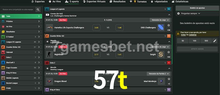 A aposta 57t oferece aos jogadores a experiência mais conveniente de apostas em eSports!